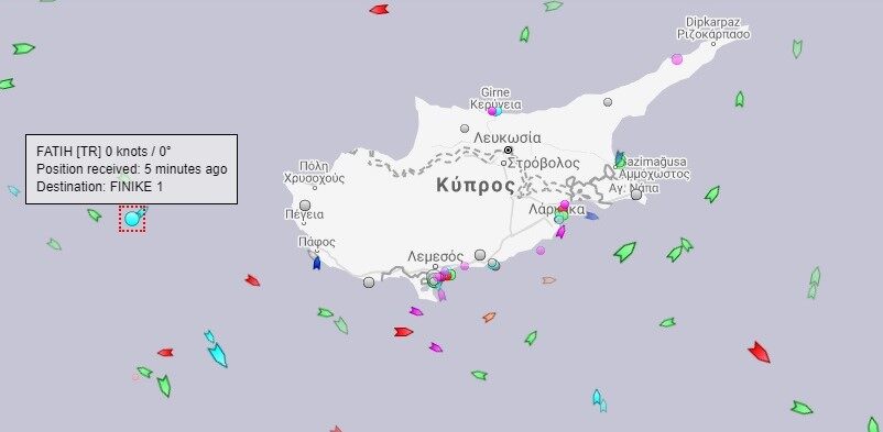 Στην περιοχή βρίσκεται επίσης και το δεύτερο τουρκικό γεωτρύπανο «Φατίχ», το οποίο είναι αγκυροβολημένο 36 ναυτικά μίλια δυτικά του Ακάμα από τις 4 Μαΐου. Επιπλέον σύμφωνα με το Marine Traffic, την ιστοσελίδα μέσα από την οποία φαίνονται οι κινήσεις των πλοίων διεθνώς, στην κυπριακή ΑΟΖ βρίσκεται και το τουρκικό ερευνητικό σκάφος Μπαρμπαρός.
