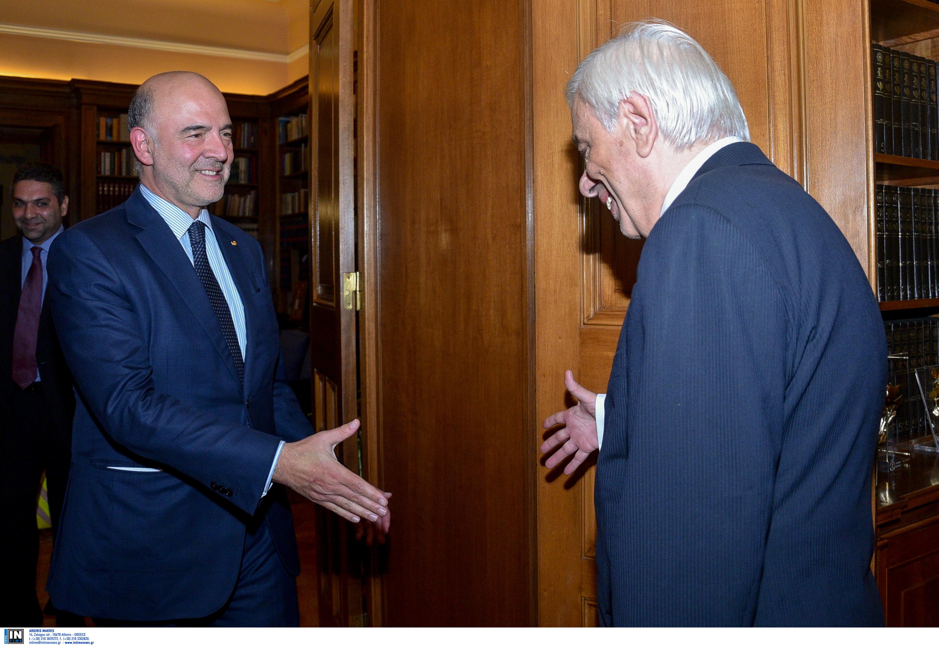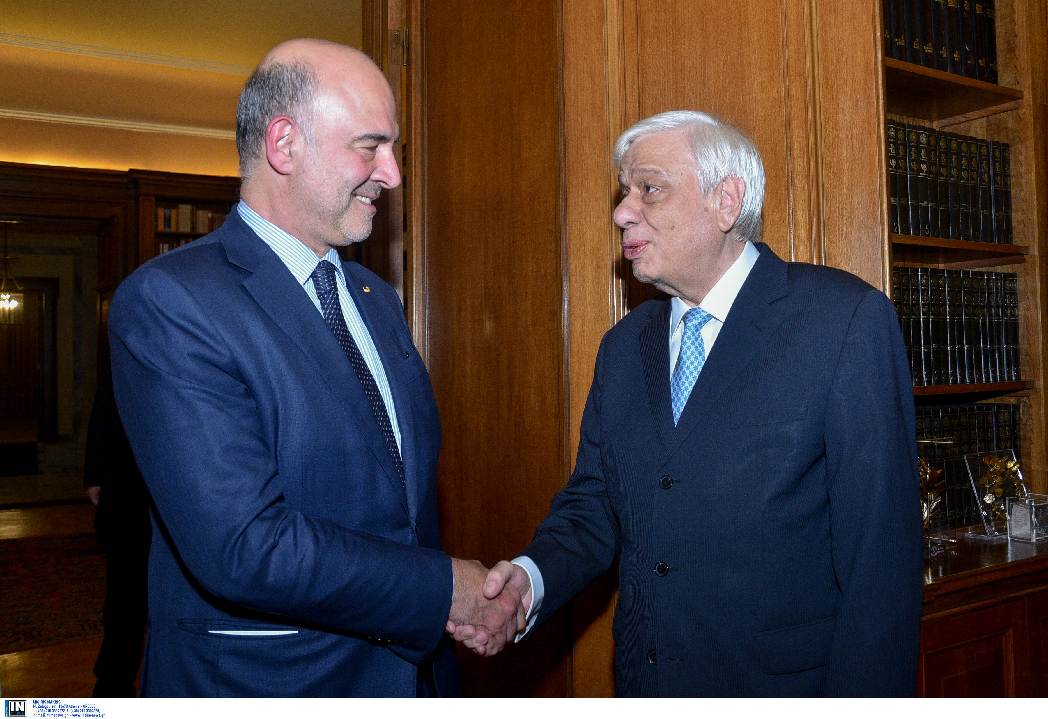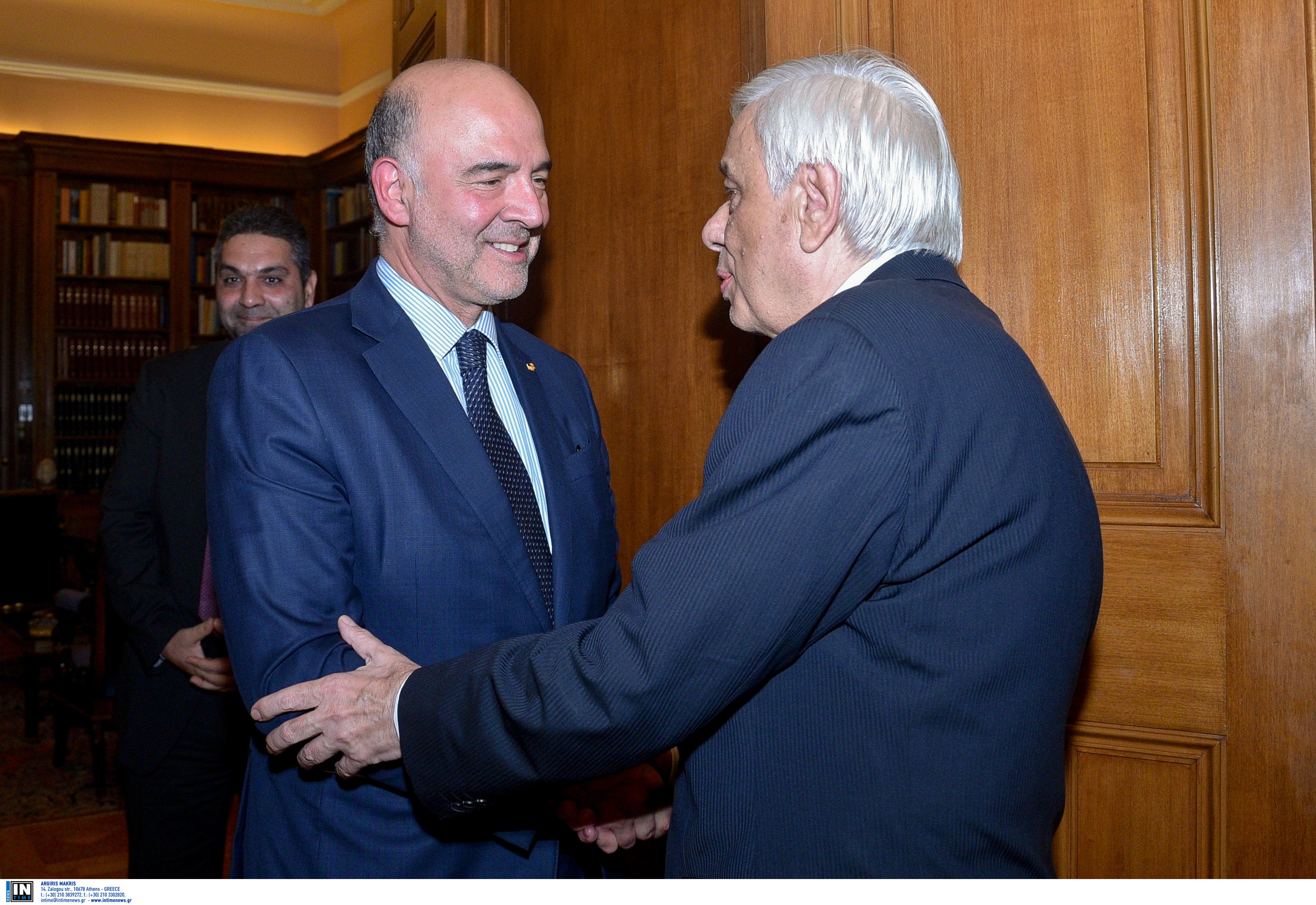 Ο κ. Παυλόπουλος συνεχάρη τον Πιέρ Μοσκοβισί για την άψογη ολοκλήρωση της τόσο σημαντικής αποστολής του ως Επιτρόπου, και μάλιστα σε μια κρισιμότατη περίοδο ιδίως για την Ευρωζώνη και το ευρώ.