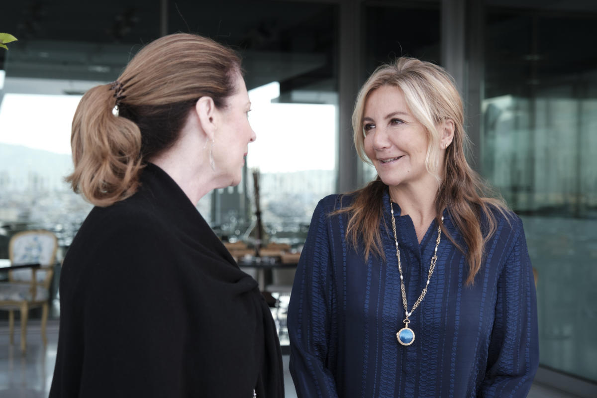 Η Σούζαν Πομπέο καλωσόρισε την Μαρέβα Γκραμπόφσκι, λέγοντας «καλημέρα» στα ελληνικά και στη συνέχεια την αγκάλιασε και την φίλησε.