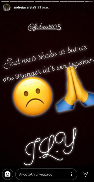 Οι ανησυχίες των φίλων του ΠΑΟΚ μεγάλωσαν, μετά από ένα ποστάρισμα της συζύγου του Βαρέλα. Συγκεκριμένα, σε σχόλιο της η Άντρεϊα Βαρέλα ανέφερε: “Άσχημα νέα που μας ταρακούνησαν, αλλά είμαστε δυνατοί και θα κερδίσουμε μαζί”.