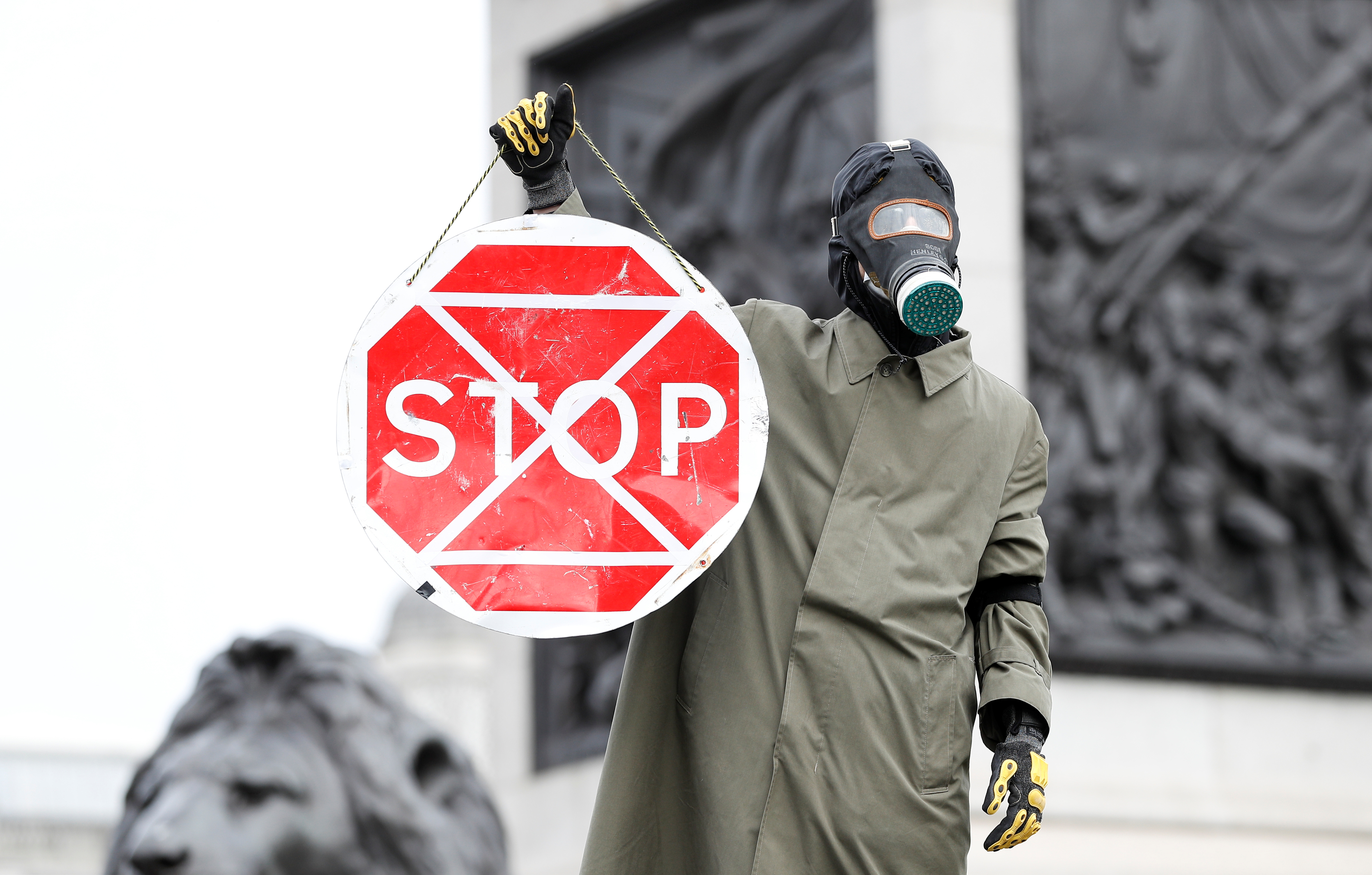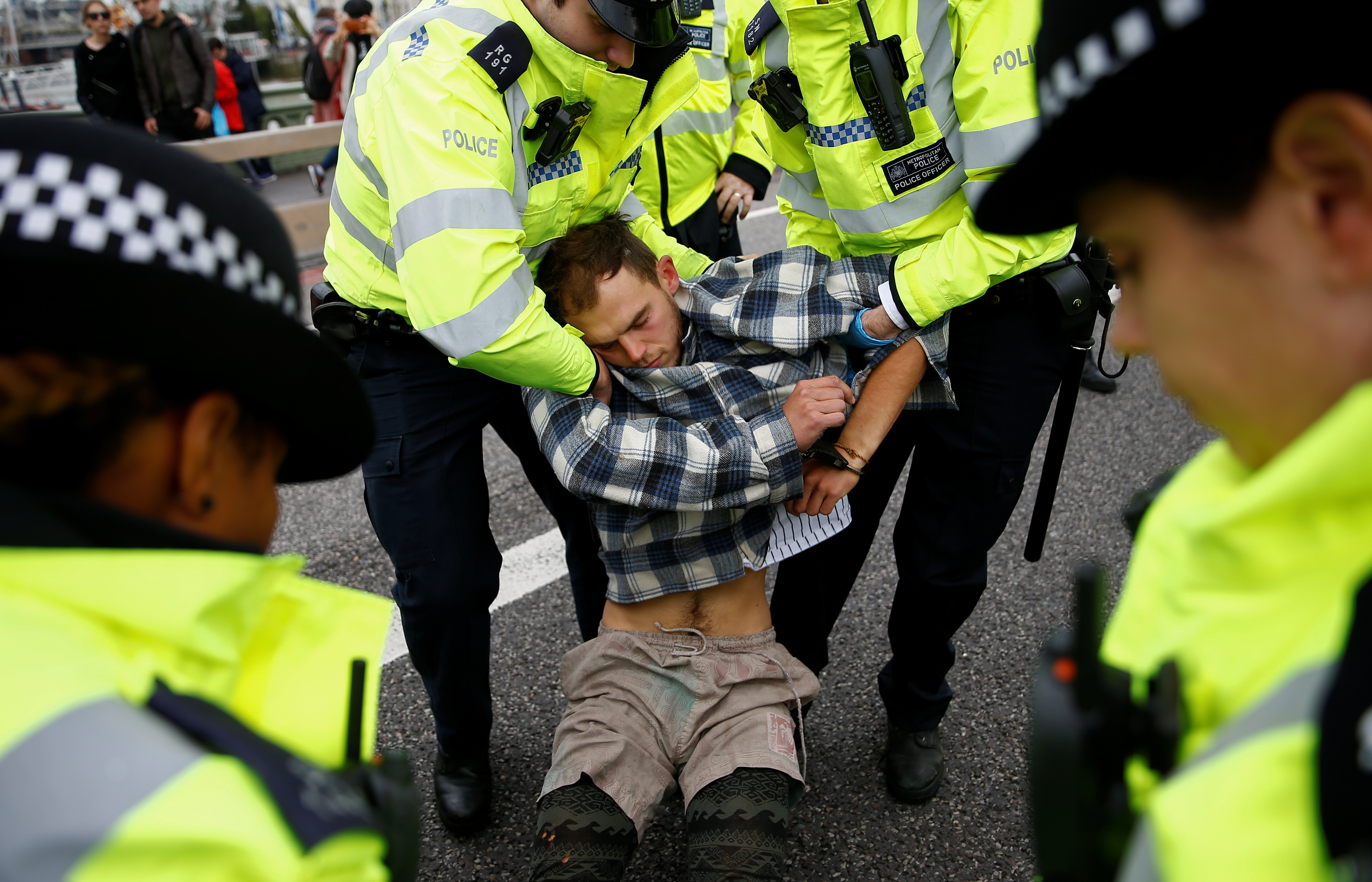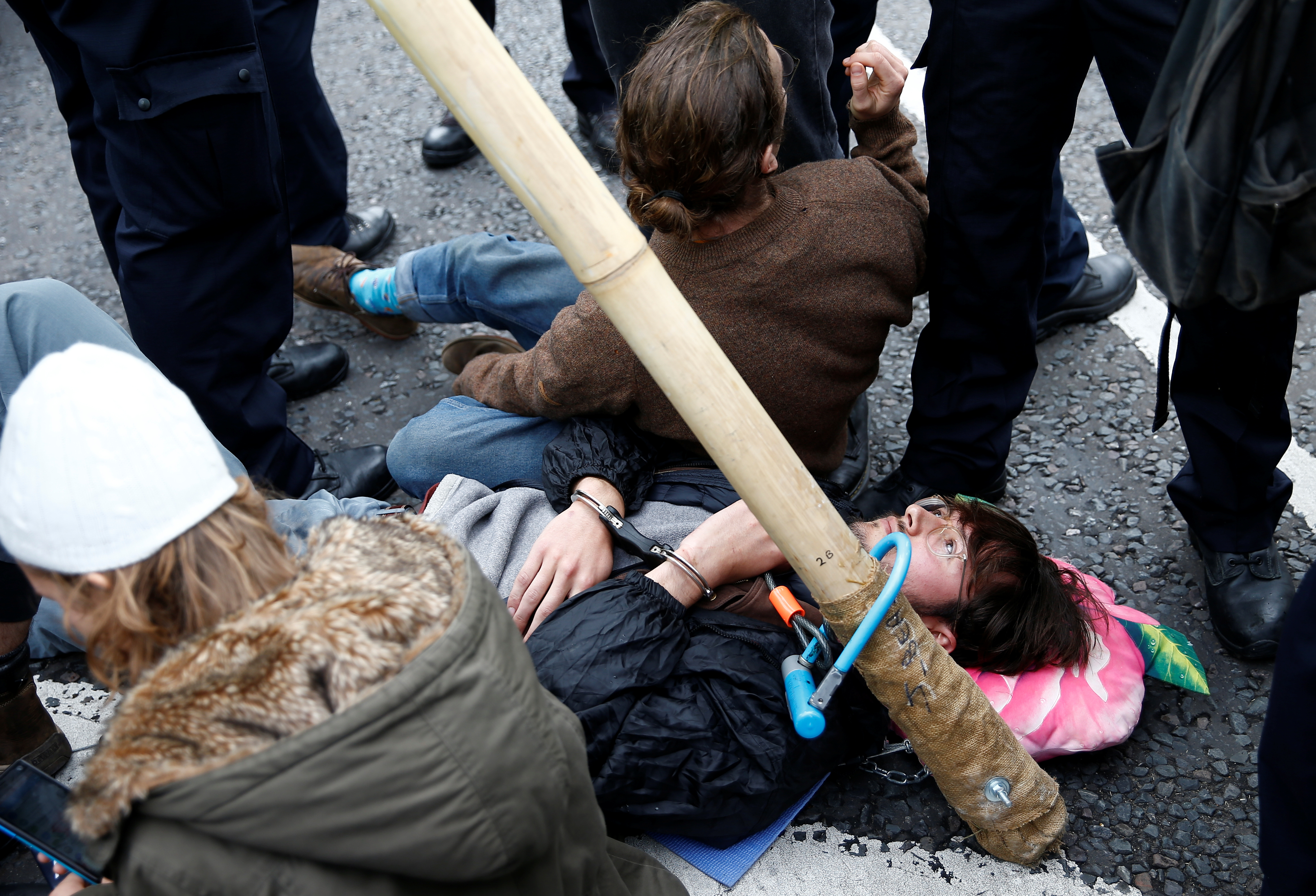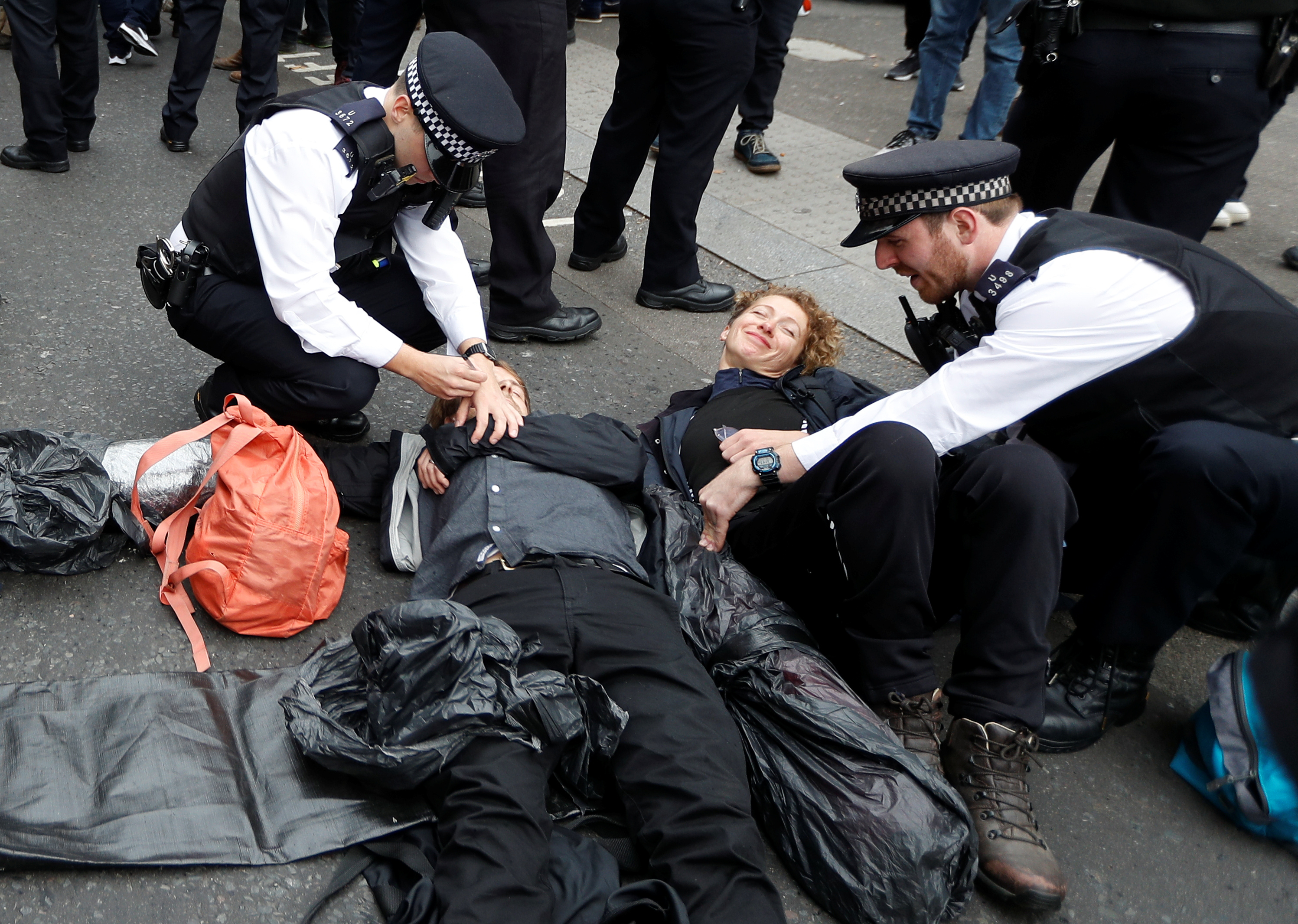 Ακτιβιστές απέκλεισαν δρόμους, γέφυρες και πλατείες στην περιοχή του Ουέστμινστερ στο Λονδίνο καλώντας την κυβέρνηση να αναλάβει επείγουσα δράση για τη μείωση των εκπομπών διοξειδίου του άνθρακα.