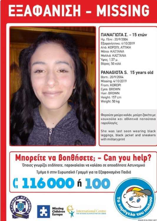 Η 15χρονη εξαφανίστηκε στις 4/10/2019 και ώρα 16:00.