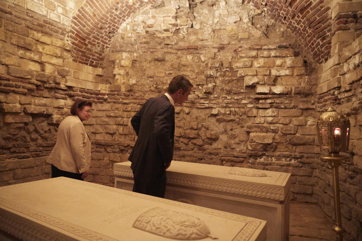 Στο πλευρό του συζύγου της, Κυριάκου Μητσοτάκη, η Μαρέβα Γκραμπόβσκι απαθανατίστηκε από τον φωτογραφικό φακό σε επίσκεψη στην Ιερά Μονή Αγίου Γεωργίου.