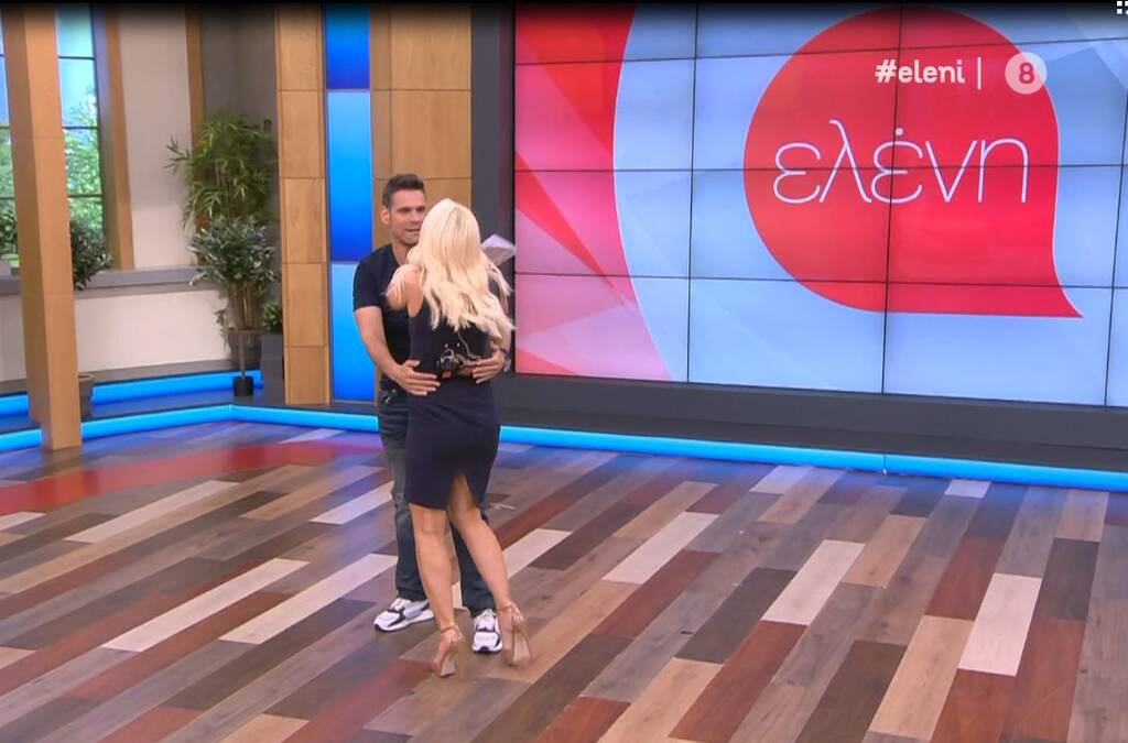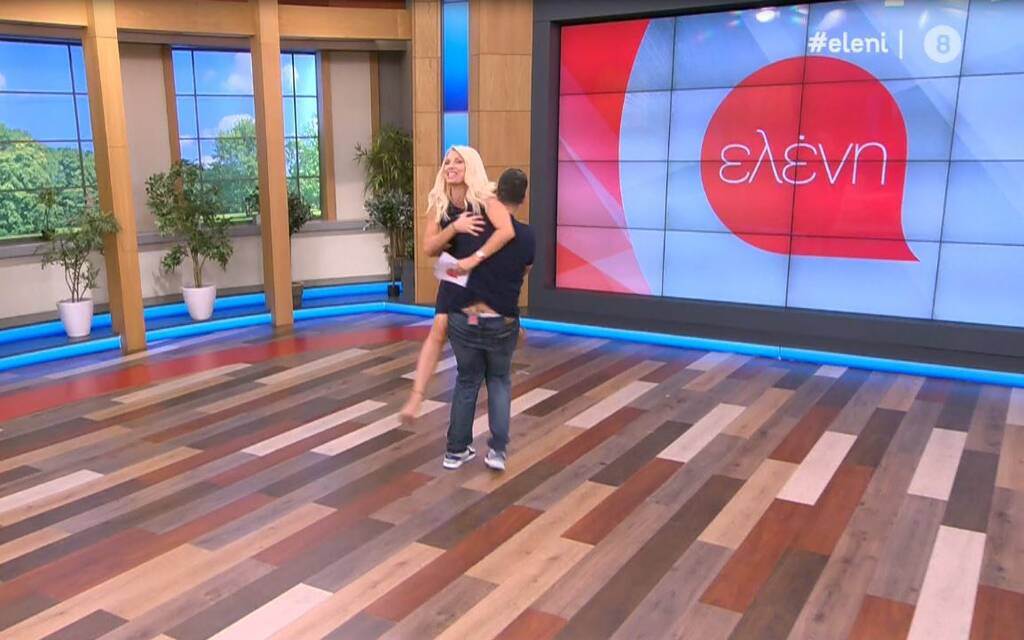 Και τότε ο Δημήτρης Ουγγαρέζος την αγκάλιασε και τη σήκωσε ψηλά! Η Ελένη αιφνιδιάστηκε και άρχισε να φωνάζει για να την αφήσει κάτω!