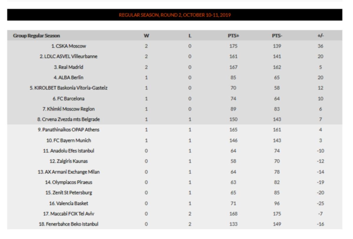 Άσχημα έχει ξεκινήσει τη σεζόν η Φενέρμπαχτσε που μετά τη Μαδρίτη ηττήθηκε και στο Βελιγράδι από τον Ερυθρό Αστέρα, ενώ πιο εύκολα από όλους έχει φθάσει ήδη στο 2/2 η πρωταθλήτρια Ευρώπης ΤΣΣΚΑ Μόσχας. Τα αποτελέσματα της αγωνιστικής