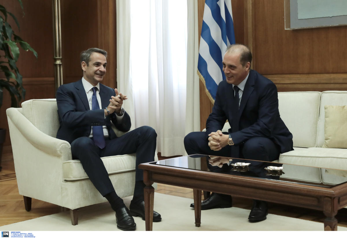 Μία… και τέλος! Ο Κυριάκος Μητσοτάκης συναντά τον πρόεδρο της Ελληνικής Λύσης, Κυριάκο Βελόπουλο και είναι η προτελευταία συνάντηση με τους πολιτικούς αρχηγούς, καθώς μένει μόνο να συναντηθεί ακόμα με τον Γιάνη Βαρουφάκη.
