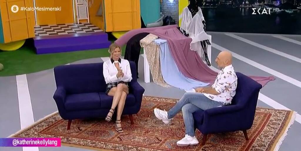 Η Κάθριν Κέλι Λανγκ εισέβαλε στο πλατό του Νίκου Μουτσινά το μεσημέρι της Παρασκευής (11/10).