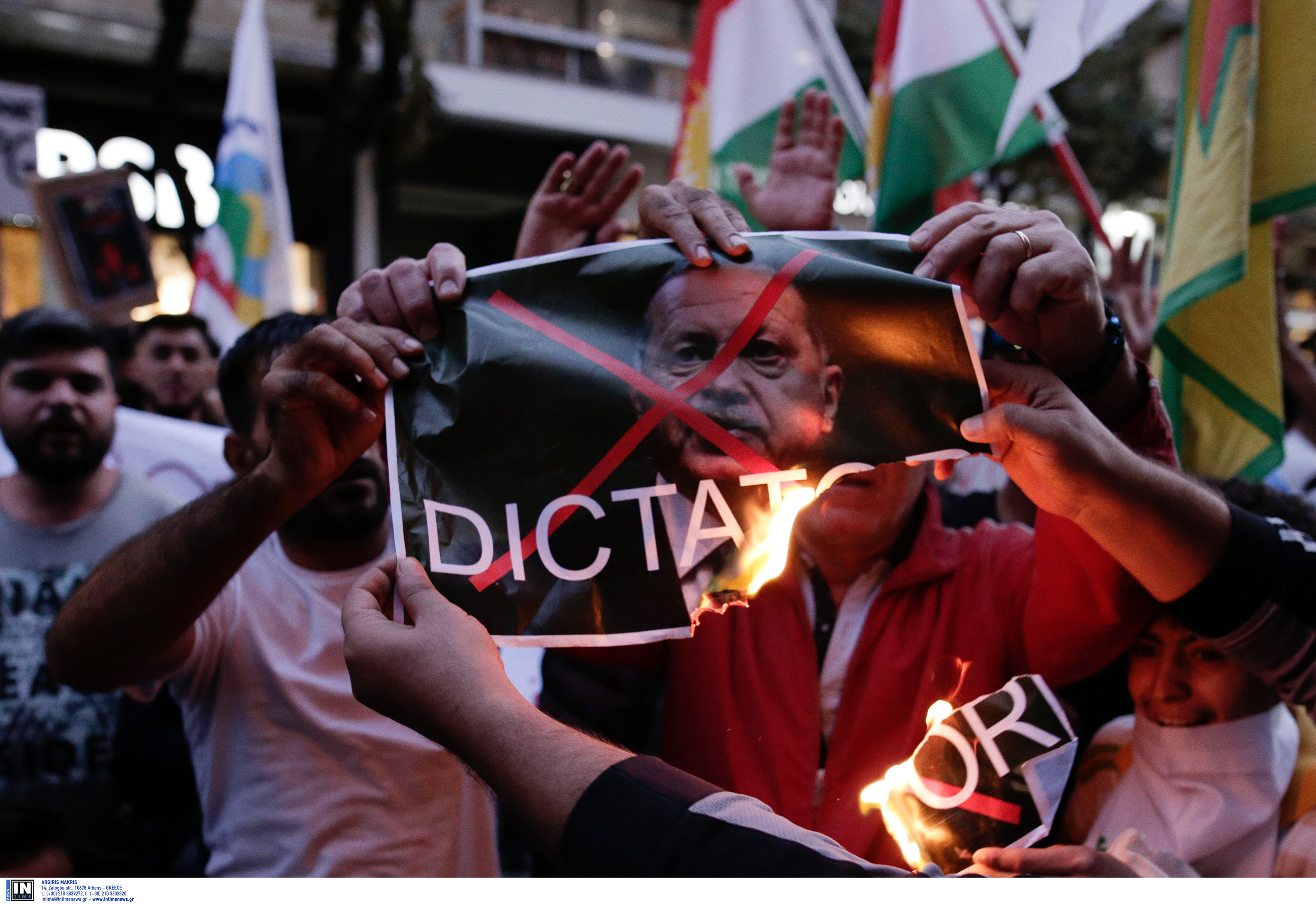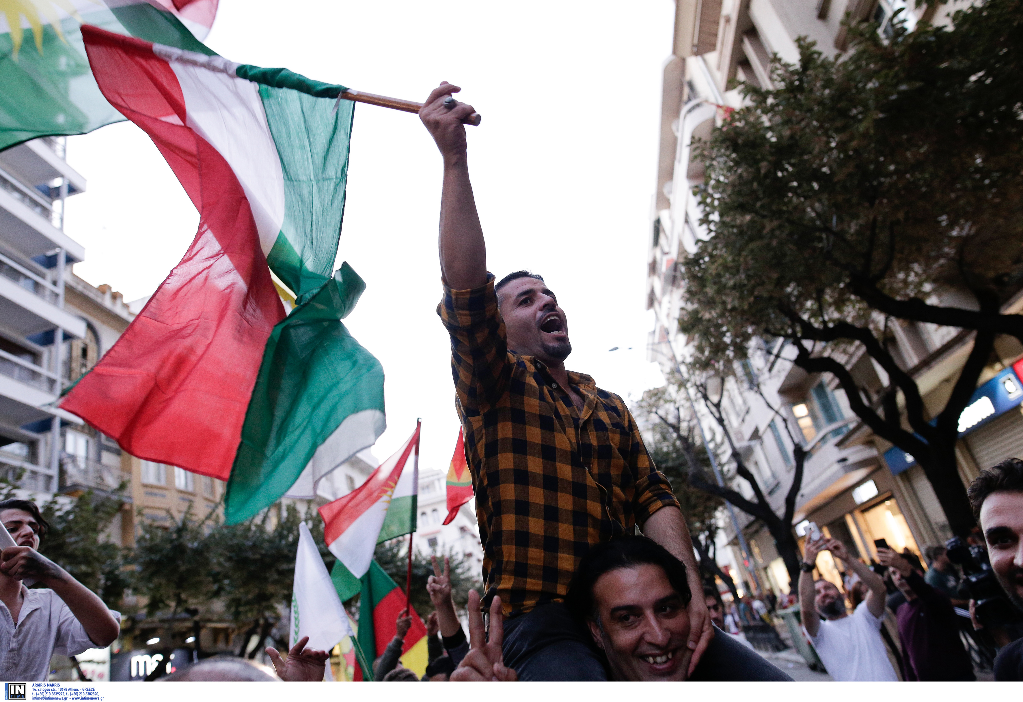 Πορεία διαμαρτυρίας ενάντια στην τουρκική εισβολή στη Συρία, πραγματοποίησαν στο κέντρο της Θεσσαλονίκης Κούρδοι και μέλη σχημάτων της εξωκοινοβουλευτικής Αριστεράς, εκφράζοντας παράλληλα και την αλληλεγγύη τους στον κουρδικό λαό.