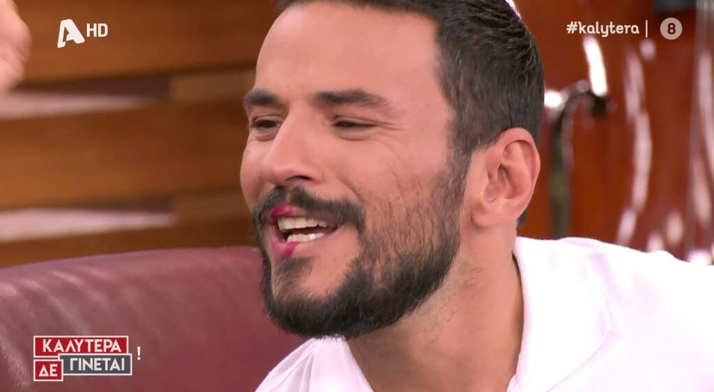 Όλοι τους ξέσπασαν σε γέλια και ο Κώστας Τσουρός βρέθηκε ξαφνικά με κόκκινο κραγιόν στα χείλη.