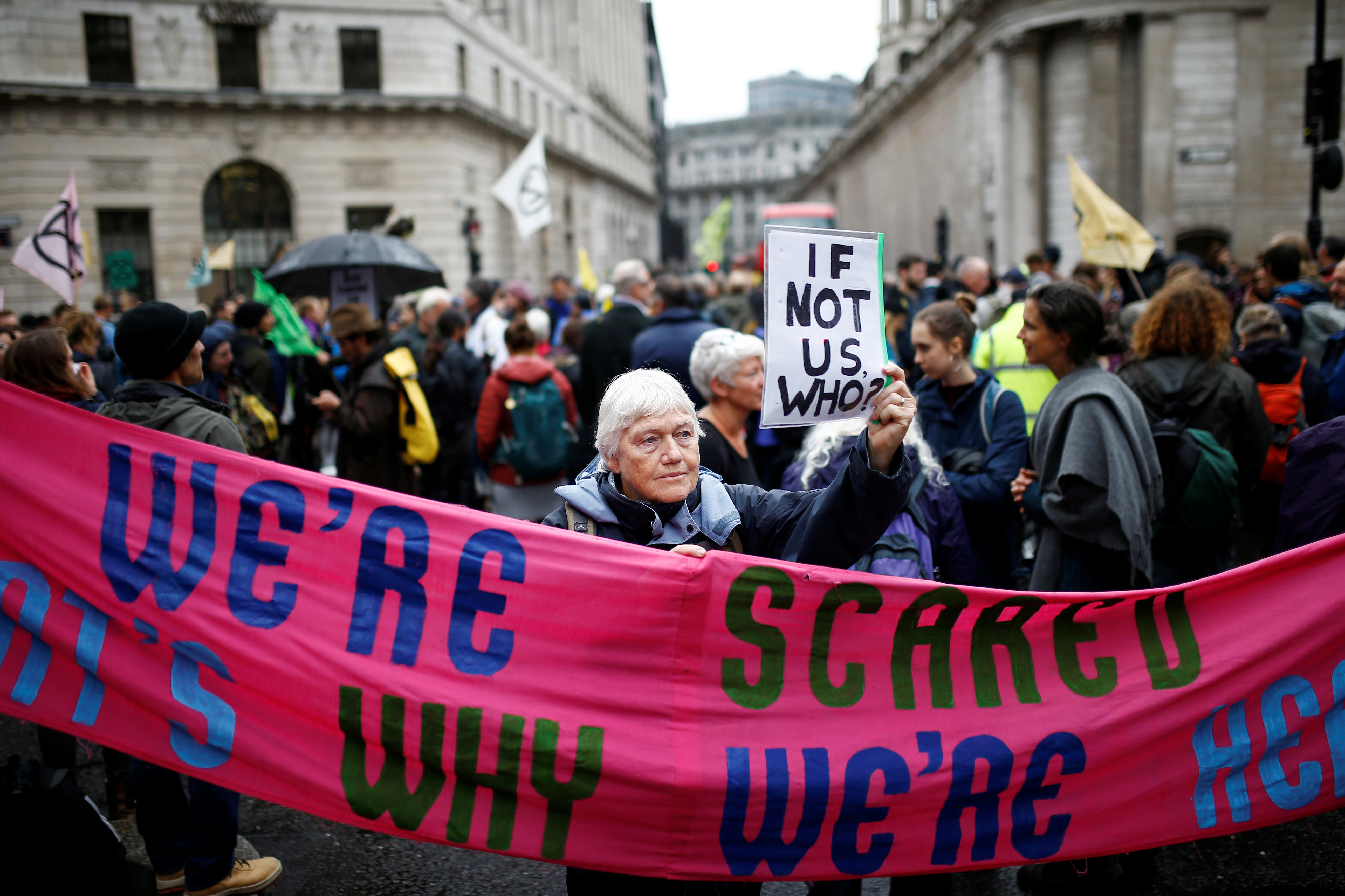 Οι διαδηλωτές της Extinction Rebellion απέκλεισαν τους δρόμους γύρω από το Bank, στην καρδιά του Σίτι του Λονδίνου.
