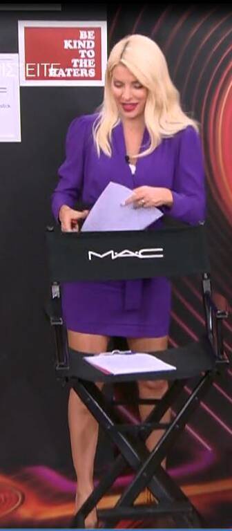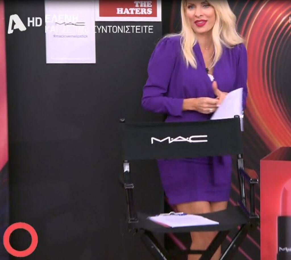 Η Ελένη Μενεγάκη φορούσε ένα μωβ, κοντό θεόστενο φόρεμα και πάθαμε πλάκα όταν ο σκηνοθέτης της έκανε ένα κοντινό πλάνο στα υπέροχα πόδια της.