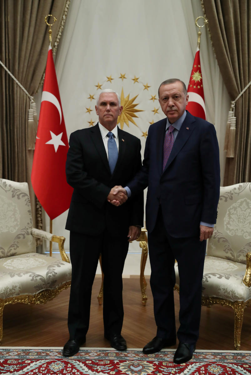 Με εντολή Τραμπ, ο αντιπρόεδρος των ΗΠΑ ταξίδεψε στην Άγκυρα επικεφαλής αντιπροσωπείας για να προσπαθήσει να πείσει τον Ερντογάν να σταματήσει την επιχείρηση στη βόρεια Συρία και να αποχωρήσει από την περιοχή.