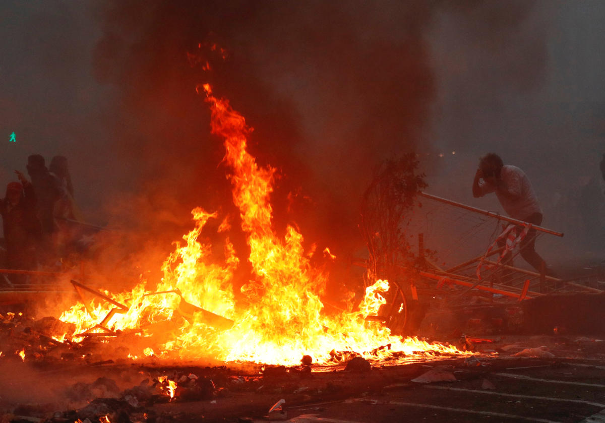 Στο τέλος της κινητοποίησης, κι ενώ το πλήθος είχε φθάσει στο κεντρικό αστυνομικό τμήμα της πόλης, εκατοντάδες διαδηλωτές πυρπόλησαν κάδους απορριμμάτων αψηφώντας τους αστυνομικούς των μονάδων αντιμετώπισης ταραχών, που εκτόξευαν δακρυγόνα εναντίον τους για να τους διαλύσουν.
