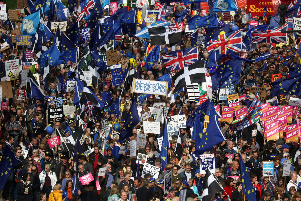 “Είμαι θυμωμένος γιατί δεν εισακουόμαστε. Σχεδόν όλες οι δημοσκοπήσεις δείχνουν ότι ο λαός θέλει να παραμείνουμε στην ΕΕ. Αισθανόμαστε ότι δεν έχουμε φωνή”, είπε η 56χρονη Χάνα Μπάρτον, παραγωγός μηλίτη από την κεντρική Αγγλία, που ήταν τυλιγμένη σε μια σημαία της ΕΕ. “Πρόκειται για μια εθνική καταστροφή εν αναμονή και θα καταστρέψει την οικονομία”, πρόσθεσε.