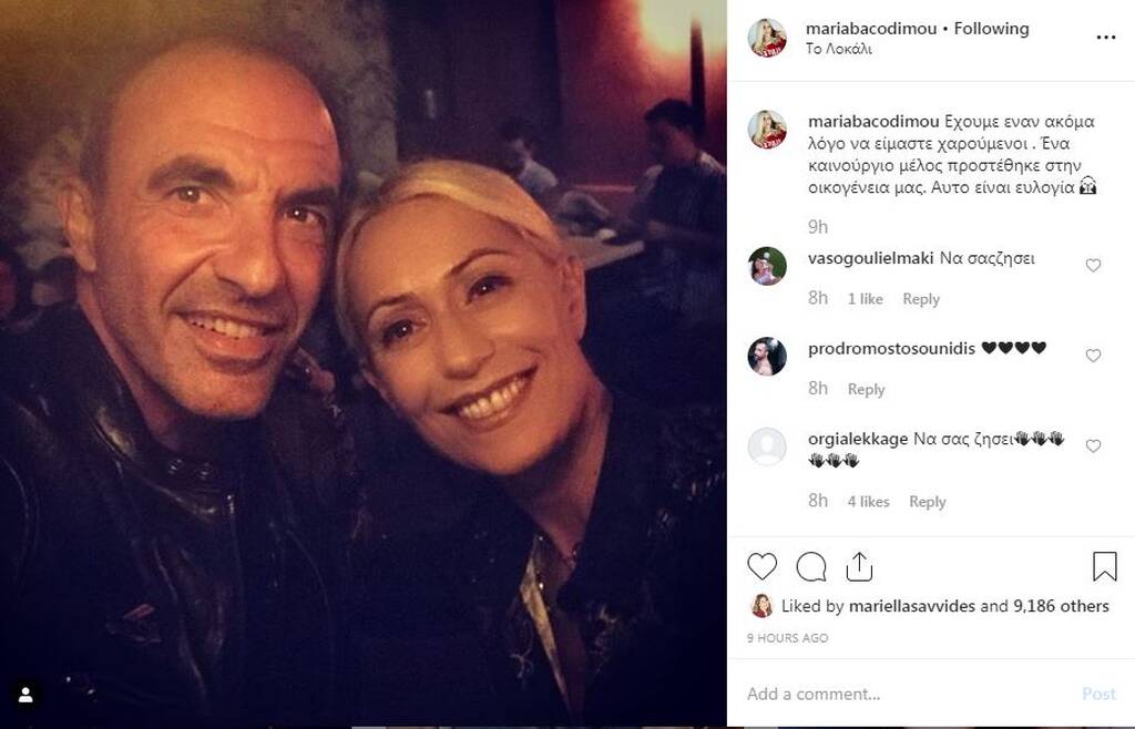 Η Μαρία Μπακοδήμου έγραψε χαρακτηριστικά: «Εχουμε εναν ακόμα λόγο να είμαστε χαρούμενοι . Ένα καινούργιο μέλος προστέθηκε στην οικογένεια μας. Αυτο είναι ευλογία » και έτσι ανακοίνωσε το χαρμόσυνο νέο.
