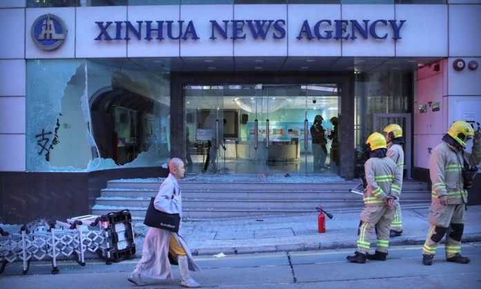 Το ίδιο το Xinhua καταδίκασε την επίθεση των «βαρβάρων μπράβων», που έσπασαν πόρτες και συστήματα ασφαλείας, ενώ έριξαν και μπογιές στην είσοδο.
