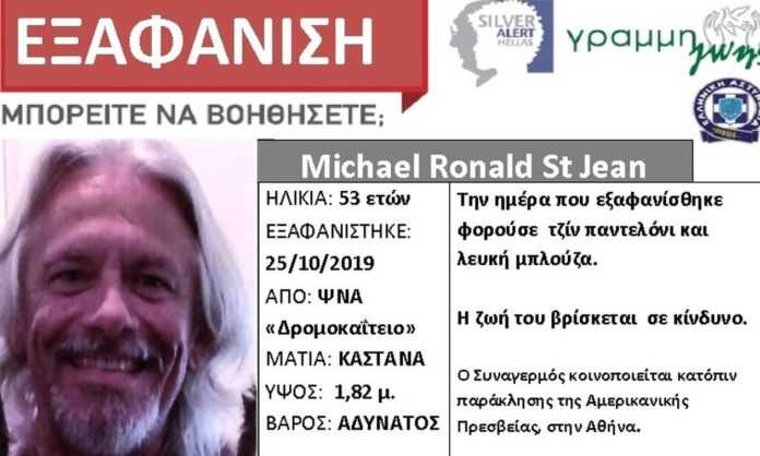 Silver Alert έχει εκδοθεί μετά την εξαφάνιση του 53χρονου Michael Ronald St Jean, από το Ψυχιατρικό Νοσοκομείο Αττικής «Δρομοκαΐτειο», από την Παρασκευή 25 Οκτωβρίου.