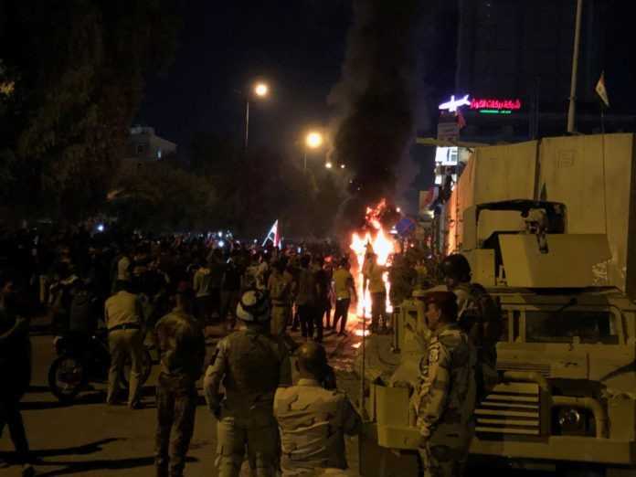 Οι δυνάμεις ασφαλείας έκαναν χρήση πραγματικών σφαιρών για να αντιμετωπίσουν τους διαδηλωτές που προσπάθησαν να πυρπολήσουν το προξενείο του Ιράν, το οποίο το κίνημα διαμαρτυρίας κατηγορεί ότι ευθύνεται για το διεφθαρμένο σύστημα που κυβερνά το Ιράκ.