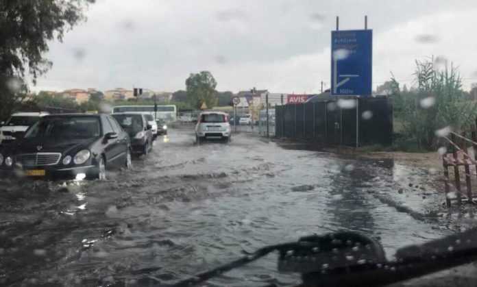 Η έντονη βροχόπτωση έφερε προβλήματα στον δρόμο της παράκαμψης του αεροδρομίου, με πλημμύρες στους δρόμους.