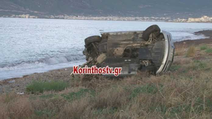 Το αυτοκίνητο που κινούταν στην Παλαιά Εθνική Οδό Κορίνθου – Πατρών ξέφυγε της πορείας του, χτύπησε σε τσιμεντένια βάση κολόνας και κατέληξε στην παραλία του Κανταρέ στην Κόρινθο.