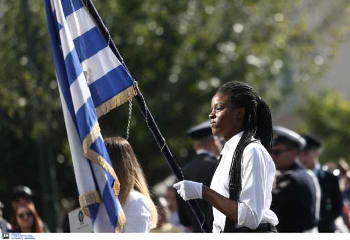 Κρατώντας την ελληνική σημαία στην παρέλαση για την 28η Οκτωβρίου η νιγηριανή μαθήτρια μας χάρισε μια από τις πιο “δυνατές” εικόνες των φετινών παρελάσεων.