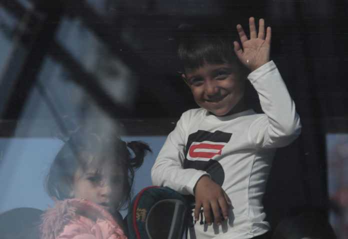 Οι μετανάστες και πρόσφυγες αναμένεται να επιβιβαστούν σε λεωφορεία που έφτασαν στο λιμάνι του Πειραιά, με προορισμό δομές φιλοξενίας.