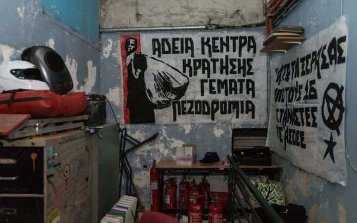 Kοντάρια, κράνη, γάντια, κουκούλες full face, ρούχα-υλικά αμφίεσης για κάλυψη χαρακτηριστικών αλλά και πυροσβεστήρες, διαρρηκτικά εργαλεία, φυλλάδια αναρχικού περιεχομένου και κομμάτια από μάρμαρα και πέτρες που χρησιμοποιούνται σε επιθέσεις, εντόπισε μέσα στην ΑΣΟΕΕ η ΕΛ.ΑΣ ύστερα από την πρωϊνή της επιχείρηση.