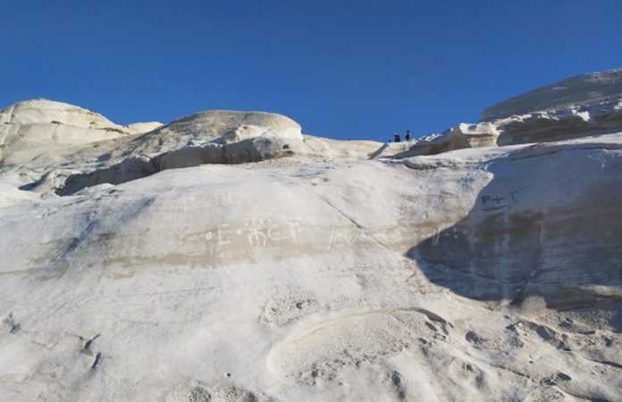 Ένα από τα διασημότερα μέρη της Ελλάδας, το Σαρακίνικο της Μήλου, έπεσε… θύμα των καλοκαιρινών επισκεπτών του νησιού. Για άλλη μία χρονιά οι επισκέπτες “βανδάλισαν” το διάσημο σεληνιακό τοπίο, γράφοντας συνθήματα και σκαλίζοντας την λάβα με αιχμηρά αντικείμενα, καταστρέφοντας την φυσική ομορφιά του μαγευτικού τοπίου.