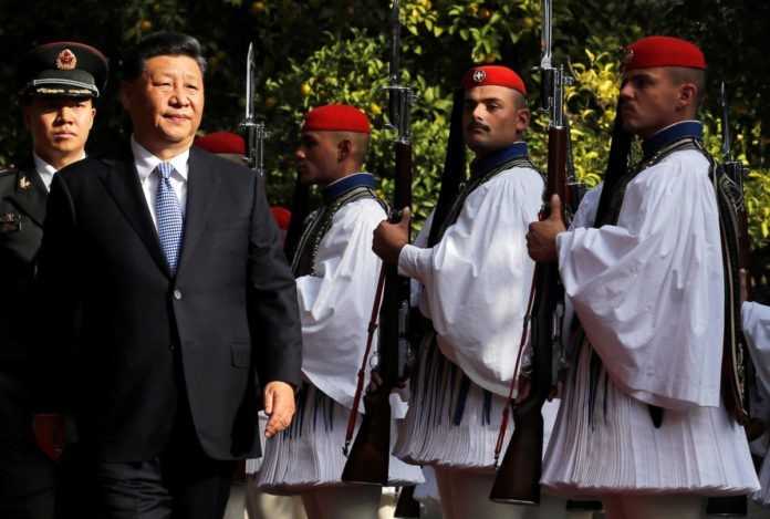Σε μια ηλιόλουστη Αθήνα ο Πρόεδρος της Κίνας, Σι Τζινπίνγκ έφτασε στο Σύνταγμα προκειμένου να καταθέσει στεφάνι στο Μνημείο του Άγνωστου Στρατιώτη.
