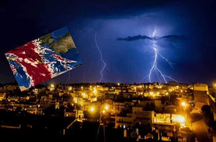Στο ίδιο βίντεο μπορείτε να δείτε και τους κεραυνούς που κατέγραψε το σύστημα καταγραφής κεραυνών “ΖΕΥΣ” του Εθνικού Αστεροσκοπείου Αθηνών.