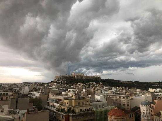 Με ηφαίστειο που μόλις εξερράγη μοιάζει η Ακρόπολη σε μία εντυπωσιακή φωτογραφία από την κακοκαιρία που έπληξε την Αθήνα στις 4 Νοεμβρίου.