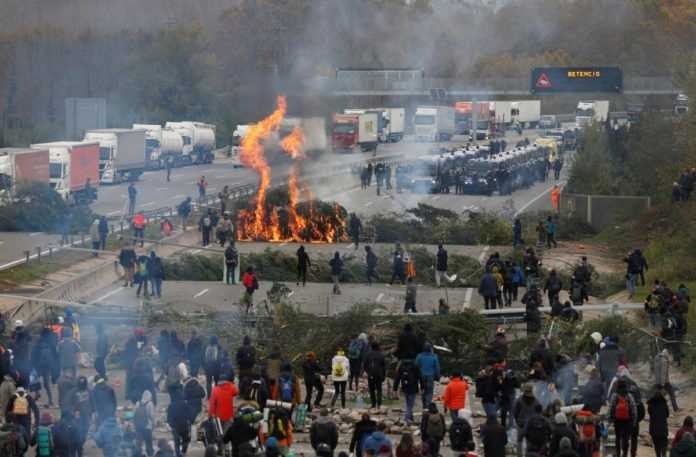 Καταλανοί αυτονομιστές απέκλεισαν τον αυτοκινητόδρομο που συνδέει Γαλλία – Ισπανία