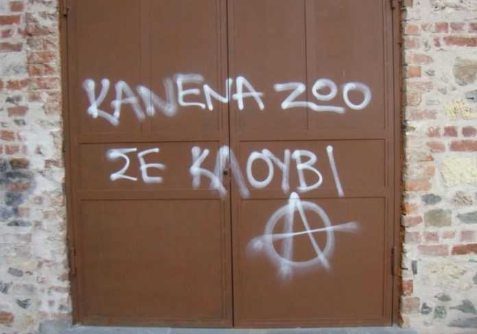 «Κανένα ζώο σε κλουβί», έγραψαν στην είσοδο του καταστήματος σύμφωνα με την ανάρτηση που έκαναν σε σελίδα του αντιεξουσιαστικού χώρου.