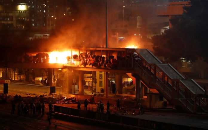 Ο νυχτερινός ουρανός στο πανεπιστήμιο στην καρδιά της συνοικίας Καουλούν φωτίστηκε από τις βόμβες μολότοφ που πέταξαν οι διαδηλωτές, σε κάποιες περιπτώσεις χρησιμοποιώντας καταπέλτη, ενώ η αστυνομία έκανε χρήση χημικών για να τους αντιμετωπίσει.