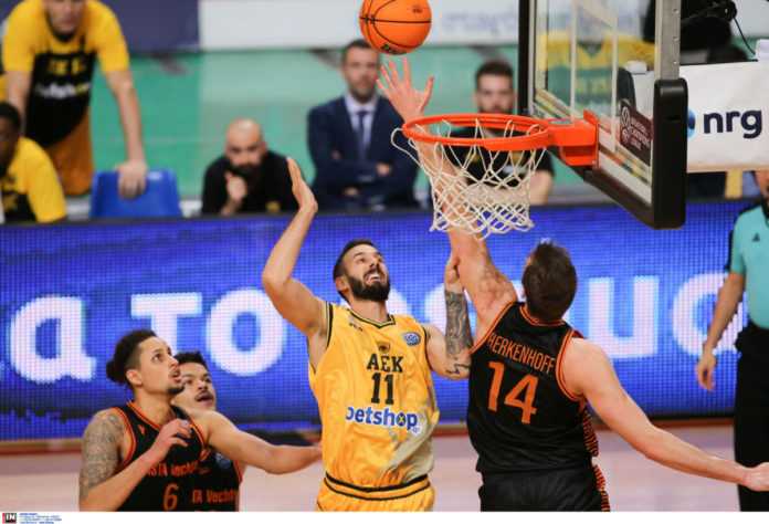 Πικρή ήττα γνώρισε η ΑΕΚ με 75-79 από την γερμανική Ράστα Φέχτα στο ΟΑΚΑ για την 6η αγωνιστική του Basketball Champions League και έχασε την ευκαιρία να “σφραγίσει” την παρουσία της στην πρώτη δυάδα του 2ου ομίλου. Η “Ένωση¨αν και προηγήθηκε με 7 πόντους στο ημίχρονο (40-33) έκανε ένα “καταστροφικό” τρίτο δεκάλεπτο, το οποίο έληξε με το σκορ να είναι 55-62 υπέρ των Γερμανών.