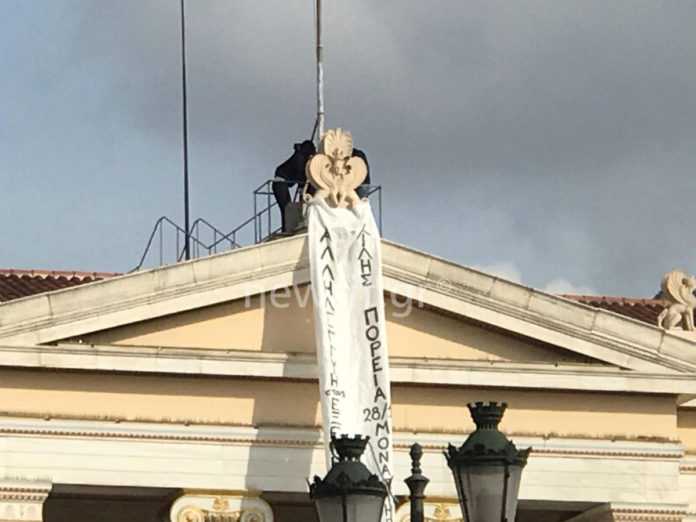 Μάλιστα, ανέβηκαν στην οροφή του πανεπιστημίου και κρέμασαν πανό.