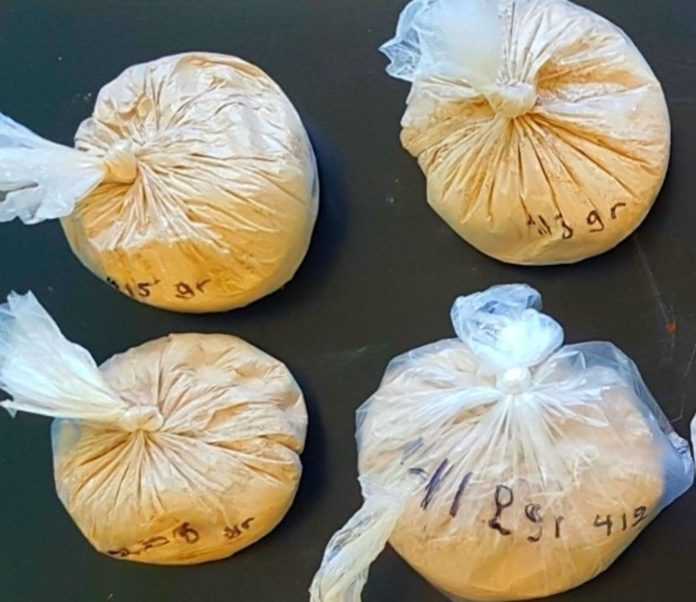 Πιο συγκεκριμένα βρέθηκαν και κατασχέθηκαν, τρεις νάιλον συσκευασίες που περιείχαν ποσότητες κάνναβης, συνολικού βάρους 39,6 γραμμαρίων, καθώς και μία νάιλον συσκευασία που περιείχε φαρμακευτικά σκευάσματα, η χημική σύσταση των οποίων θα διερευνηθεί εργαστηριακά.