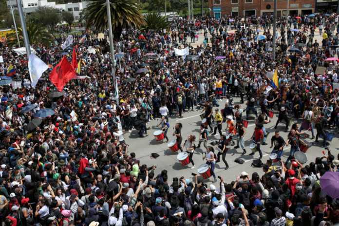 Αν και οι κινητοποιήσεις ήταν ειρηνικές στις περισσότερες πόλεις της Κολομβίας, στην πρωτεύουσα Μπογοτά αναφέρθηκαν επεισόδια το απόγευμα της Πέμπτης [το πρωί της Παρασκευής ώρα Ελλάδας]. Δρακόντεια μέσα ασφαλείας