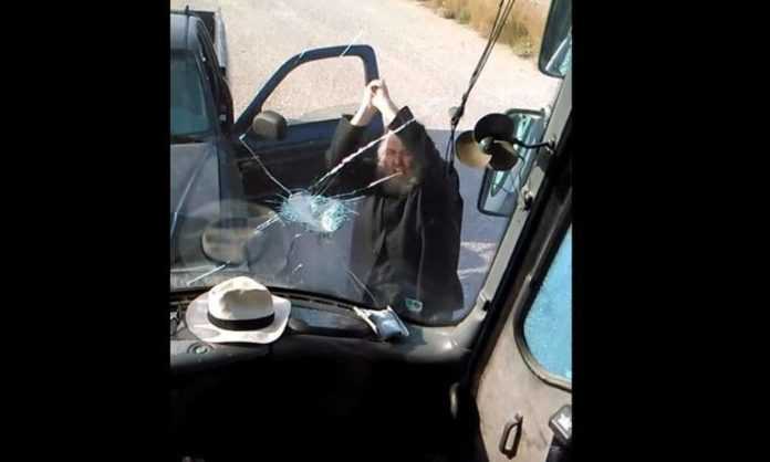 Αφού έπεσε με το όχημά του πάνω στο πούλμαν, κατέβηκε κρατώντας έναν σιδερολοστό και άρχισε να σπάει το πούλμαν.
