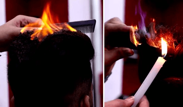 Ο μπαρμπέρης που κουρεύει με φωτιά στα μαλλιά! (vid)
