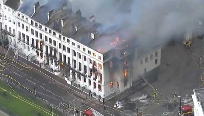 Συναγερμός έχει σημάνει στη Βρετανία, καθώς ένα ξενοδοχείο σε κτίριο Βικτωριανής εποχής έχει τυλιχθεί στις φλόγες.