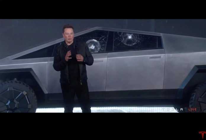Έτσι, ο επικεφαλής σχεδιαστής του χτύπησε το τζάμι του αυτοκινήτου με μια μεγάλη μεταλλική σφαίρα. Το τζάμι έσπασε. «Μάλλον το χτύπησες πολύ δυνατά», είπε ο Μασκ λίγο «φορτωμένος». Τον έβαλε μετά να το χτυπήσει με ακόμα μια μεταλλική σφαίρα. Και πάλι έσπασε. Ο Έλον Μασκ χαιρέτισε τον συνεργάτη του (ίσως για πάντα) και προσπάθησε να συνεχίσει την παρουσίαση…
