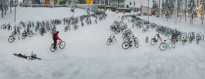 Στη μικρή πόλη Oulu, λοιπόν, ο Pekka Tahkola, ένας μηχανικός που ειδικεύεται στην αστική ευημερία, αλλά και υπεύθυνος του συστήματος ποδηλατόδρομων της περιοχής, έβγαλε και δημοσίευσε μια φωτογραφία από τον χιονισμένο χώρο στάθμευσης ποδηλάτων του τοπικού σχολείου, με τη θερμοκρασία να «γράφει» -17. Στόχος του είναι να αποδείξει σε όλο τον πλανήτη, ότι όποιες κι αν είναι οι καιρικές συνθήκες, τίποτα δεν κρατά τα παιδιά μακριά από τα ποδήλατά τους.