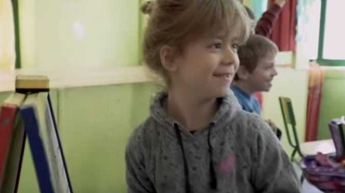 H μικρή Ευαγγελία, η οποία μιλάει επικοινωνεί στη νοηματική γλώσσα, μπορεί και συνυπάρχει στο σχολείο της με τους ακούοντες συμμαθητές της.