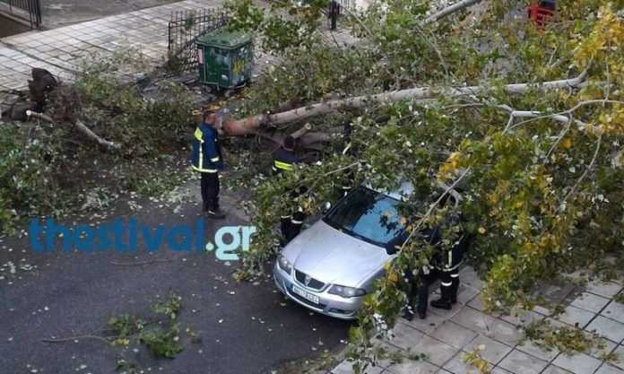 Πτώσεις δένδρων προκάλεσαν οι ισχυροί άνεμοι που έπνεαν τη νύχτα στο πολεοδομικό συγκρότημα της Θεσσαλονίκης.