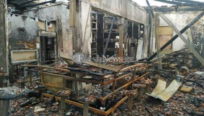 Μετά και την βραδινή βροχή που ξέπλυνε τις στάχτες, οι φωτογραφίες είναι αποκαλυπτικές για τις επιπτώσεις της πύρινης λαίλαπας η οποία – σύμφωνα με πληροφορίες – εξαπλώθηκε με ταχύτατο ρυθμό κατακαίγοντας την ξύλινη σκεπή και οτιδήποτε υπήρχε μέσα στην επιχείρηση.