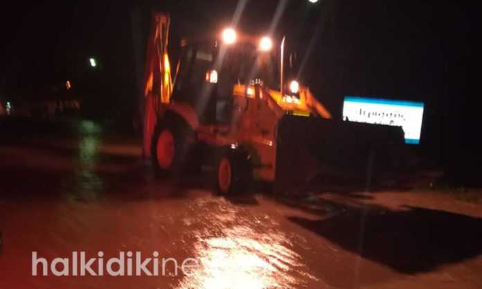 Η δυνατή βροχή που κράτησε για αρκετή ώρα φούσκωσε τα ρέματα και το νερό ξέσπασε ορμητικά στον οικισμό της Ιερισσού.