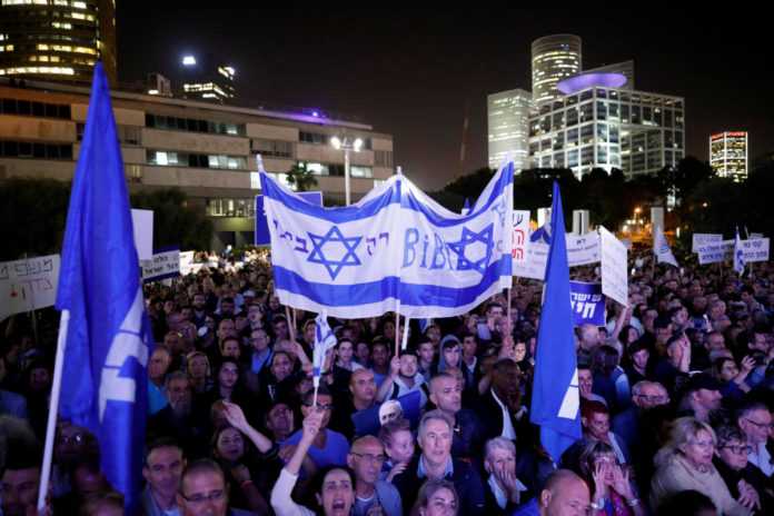 Χιλιάδες κόσμου διαδήλωσαν το βράδυ της Τρίτης στο Τελ Αβιβ για να εκφράσουν την στήριξη στον πρωθυπουργό Μπενιαμίν Νετανιάχου.