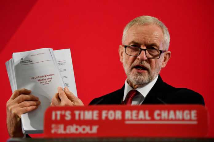 Δύο εβδομάδες πριν από τις πρόωρες βουλευτικές εκλογές, ο ηγέτης του Εργατικού Κόμματος Τζέρεμι Κόρμπιν κούνησε μπροστά στους δημοσιογράφους έγγραφα 450 σελίδων που μαρτυρούν έξι γύρους διαπραγματεύσεων από το 2017, στην Ουάσινγκτον και το Λονδίνο, ανάμεσα σε εκπροσώπους των ΗΠΑ και του Ηνωμένου Βασιλείου με θέμα τις εμπορικές σχέσεις των δύο χωρών μετά το Brexit.