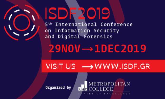 Το Μητροπολιτικό Κολλέγιο διοργανώνει για 5η συνεχή χρονιά το Διεθνές Συνέδριο στην Ασφάλεια Πληροφοριών και την Ηλεκτρονική Εγκληματολογία [International Conference in Information Security and Digital Forensics – ISDF 2019].